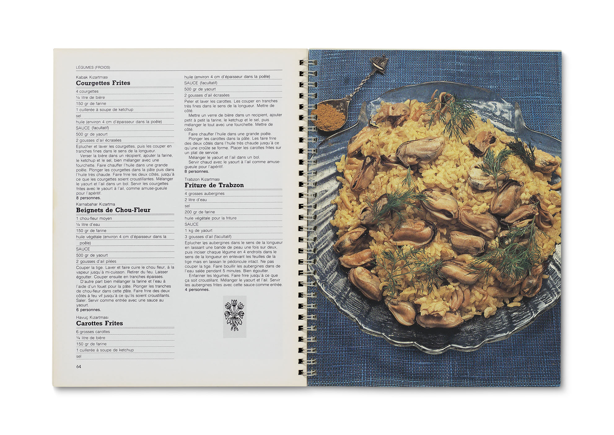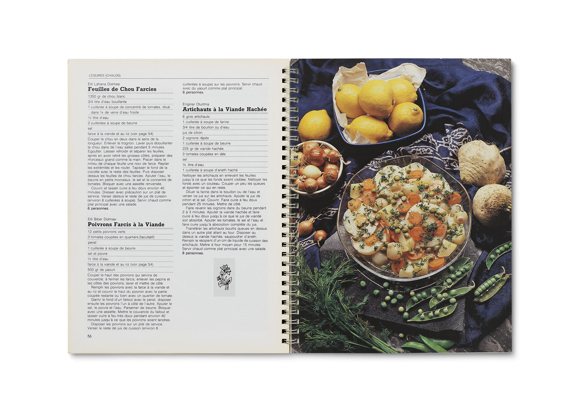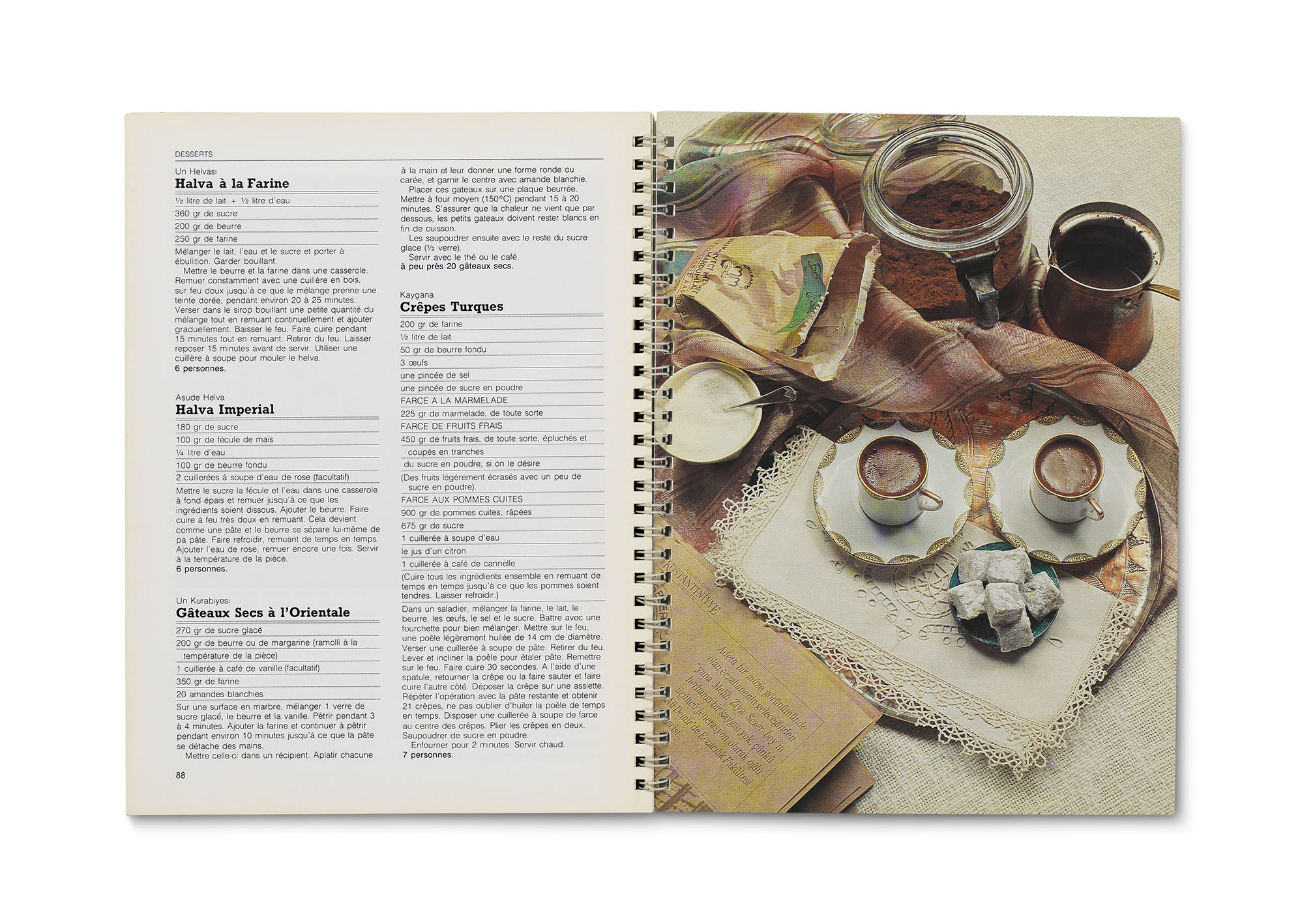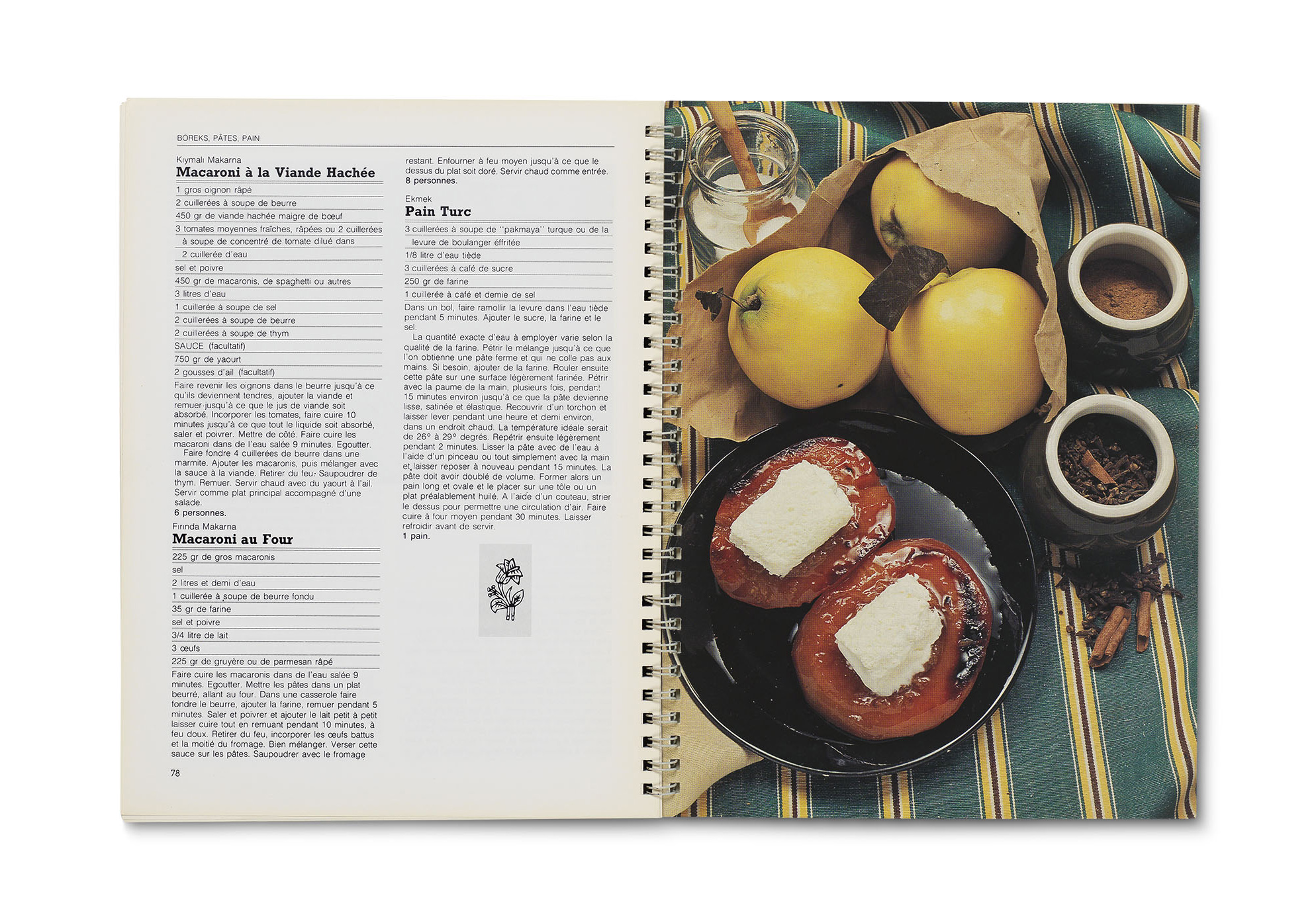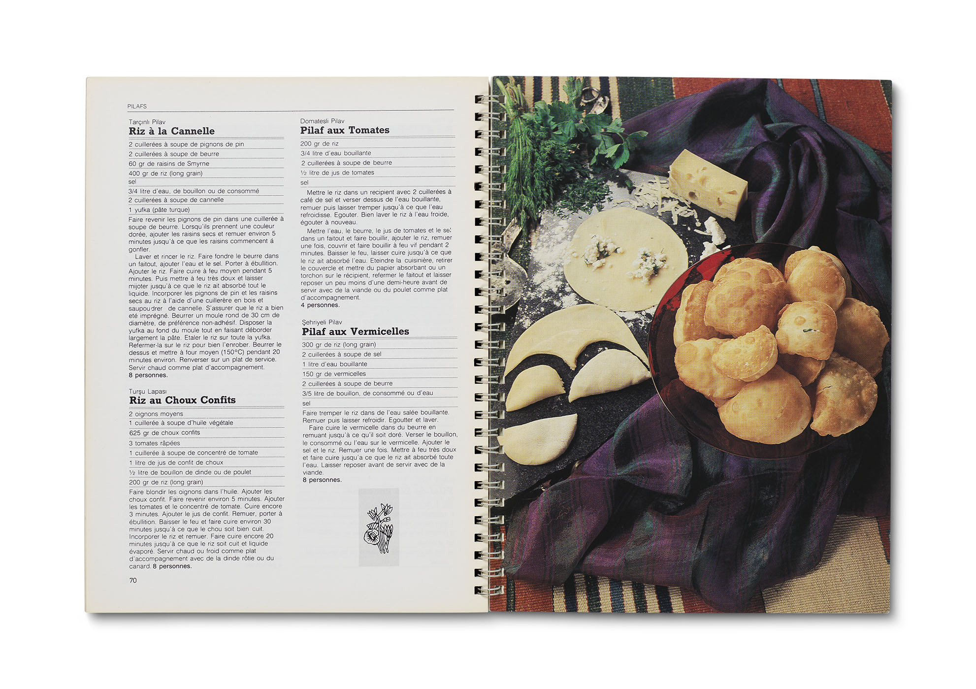 The next few sentences are not about the client—she was a lovely person, but about confusion and about my first book project in “real life”. To begin with, the client had asked a costume designer to design her book. The costume designer Naz Erayda, handed the project on to me. But there was a problem. The client was adamant she wanted an existing design. If I were not a relatively new graduate when one still asks for other people’s opinion, I would have said a simple “no”. Instead I discussed the matter with a member of faculty at Mimar Sinan Academy of Fine Arts who said, “of course, what seems to be the problem?”. So, I did what amounted to stealing somebody else’s design for the first and last time. However I styled the photographs with my mother’s tableware and kitchenware. I added some vignettes—printed from woodblocks which are used to hand-print tablecloths—that gave at least a local touch to the whole thing.